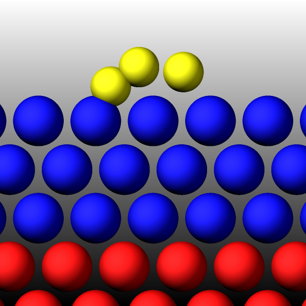 yellow sphere represents the same atom in different replicas.